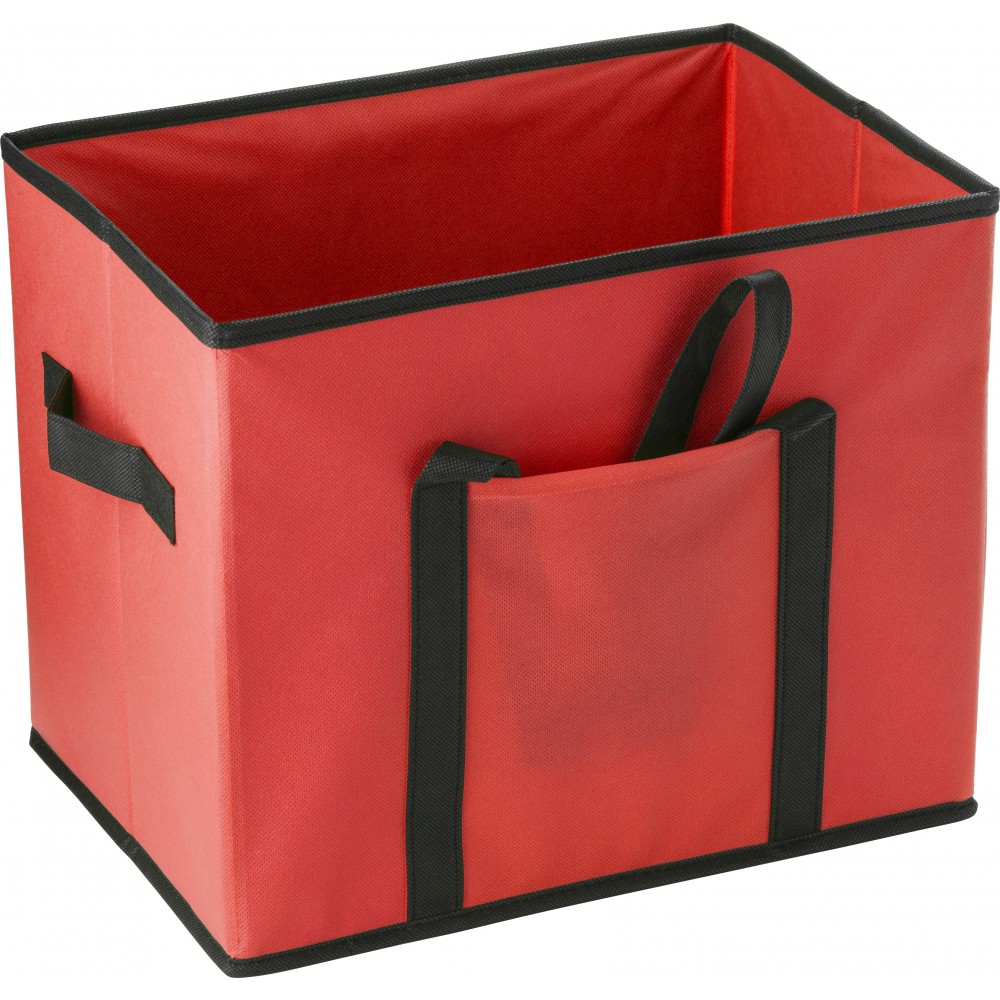 Csomagtartó-rendező két hosszú füllel, valamint rövid fogókkal. Elsőzseb és színben illeszkedő alj. 80 g/m2 nemszőtt anyag. Emblémázás: Szitanyomás