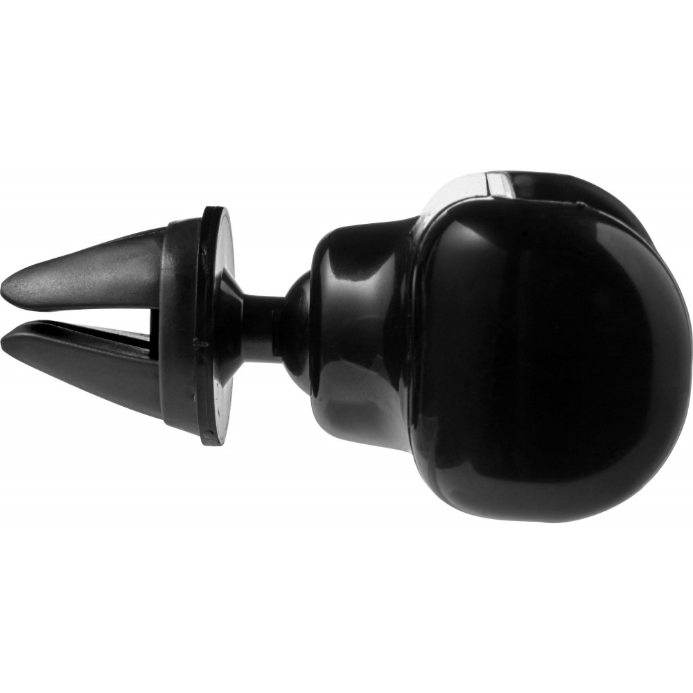 Autós telefontartó. A műszerfal szellőzőjéhez csatlakoztatható és 360 fokban elforgatható. Kihúzható oldalakkal a különböző okostelefonokhoz. ABS, PVC. Emblémázás: Tamponnyomás