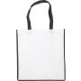 Hosszúfülű bevásárlótáska nemszőtt anyagból. 80 g/m2. Emblémázás: Szitanyomás
