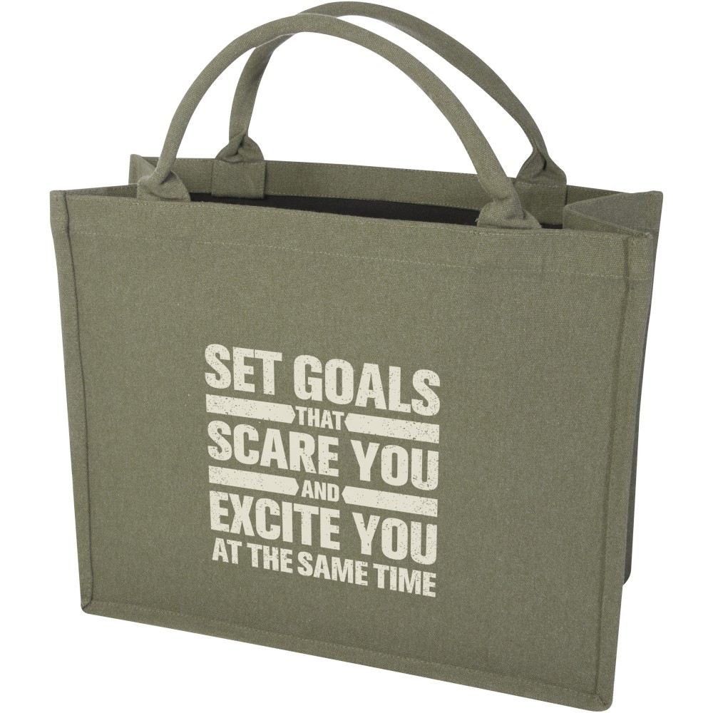 A Page újrahasznosított bevásárlótáska tökéletesen alkalmas a mindennapi tárgyak tárolására, utazásokhoz és bevásárlásokhoz. Rövid, de erős fülekkel ez a táska hosszú ideig kényelmesen hordozható. A táska Cyclo újrahasznosított szálakat tartalmaz, ahol előválogatott hulladékot használnak, amely meghatározza a fonal színét. Minden táskához egy Aware nyomjelző is tartozik. Ez az innovatív funkció lehetővé teszi a felhasználók számára, hogy egy QR-kód segítségével nyomon követhessék a termék eredetét és útját, növelve az ellátási lánc átláthatóságát és elősegítve a termék és a gyártási folyamat közötti szorosabb kapcsolatot. Méret: 42 x 18 x 35 cm. Emblémázás: Szitanyomás