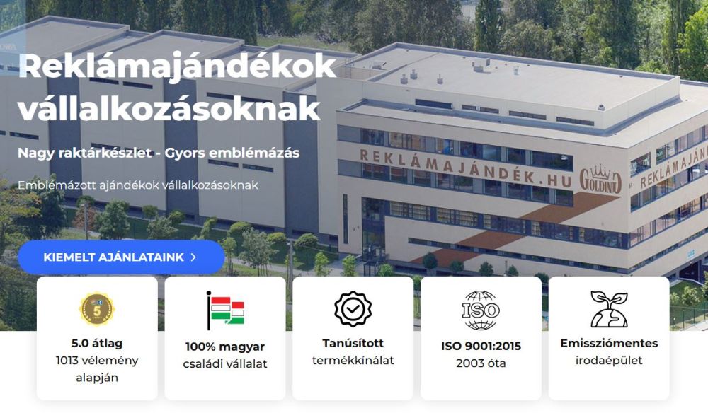 1991 óta stabilan fejlődő magyar családi vállalkozás 8.000 m2-es központban, saját raktárral és emblémázóüzemmel