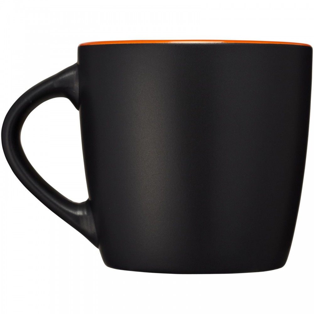 Riviera kerámia bögre matt külső felülettel és színes belsővel. Az EN12875-1 szabványnak megfelel. Csomagolása fehér doboz. Nem szivárgásmentes. Szénsavas italokkal is használható. Mosogatógépben mosható és mikrohullámú sütőben történő melegítésre alkalmas. Űrtartalom: 350 ml. Emblémázás: Bögredekor