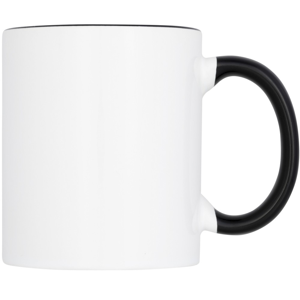 Klasszikus stílusú szublimálható kerámia bögre. Illeszkedő színű belső felülettel és füllel rendelkezik. Nem szivárgásmentes. Szénsavas italokkal is használható. Mosogatógépben mosható és mikrohullámú sütőben történő melegítésre alkalmas. Űrtartalom: 330 ml. Csomagolása fehér kartondoboz. Emblémázás: Szublimálás
