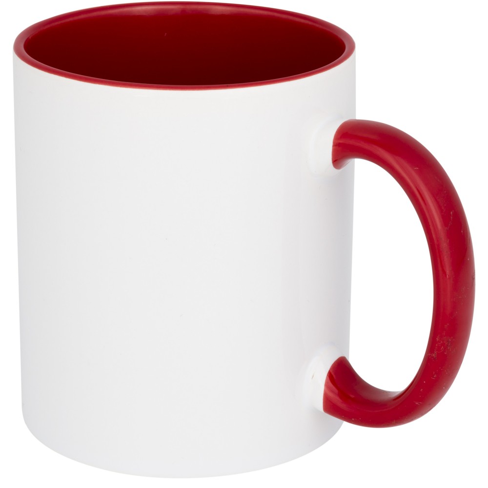 Klasszikus stílusú szublimálható kerámia bögre. Illeszkedő színű belső felülettel és füllel rendelkezik. Nem szivárgásmentes. Szénsavas italokkal is használható. Mosogatógépben mosható és mikrohullámú sütőben történő melegítésre alkalmas. Űrtartalom: 330 ml. Csomagolása fehér kartondoboz. Emblémázás: Szublimálás
