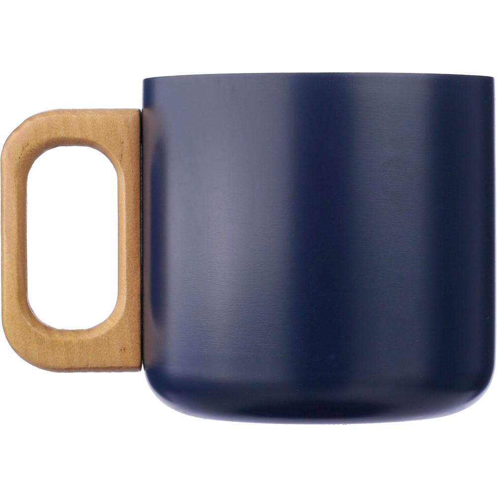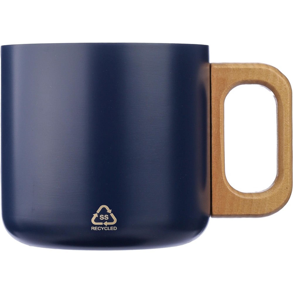 Duplafalú bögre fa fogantyúval. Mosogatógépben nem mosható. Gravírozott újrahasznosított rozsdamentes acél logóval. Egyenként barna kartondobozba csomagolva. Anyaga: újrahasznosított rozsdamentes acél. Űrtartalom: 400 ml. Emblémázás: Gravírozás