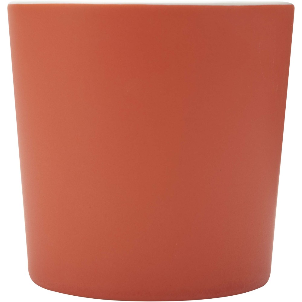 Kerámia bögre modern dizájnnal és matt felülettel. Nem szivárgásmentes. Szénsavas italokkal is használható. Mosogatógépben mosható és mikrohullámú sütőben történő melegítésre alkalmas. Űrtartalom: 370 ml. Újrahasznosított karton díszdobozban. Emblémázás: Bögredekor, Matricázás