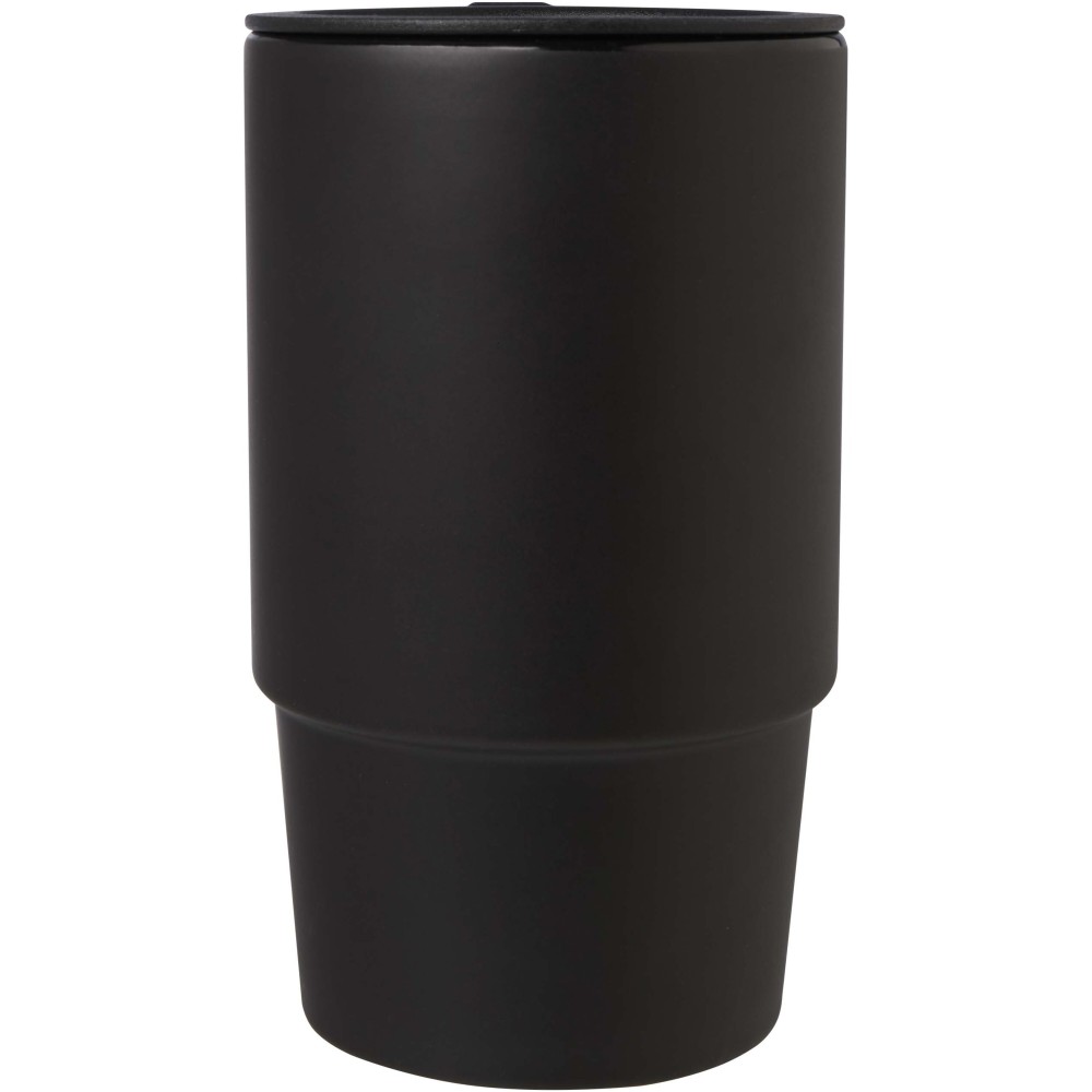 Kerámia bögre nagy, túlméretezett füllel a könnyű fogás érdekében, valamint cseppmentes műanyag tetővel az útközbeni kényelemhez. Külső felülete stílusos, matt kivitelű, a bögre pedig minden nyomtatási eljárás esetén mosogatógépben mosható. Újrahasznosított kartondobozos díszcsomagolásban kerül átadásra. Űrtartalom: 450 ml. Emblémázás: Bögredekor, Tamponnyomás