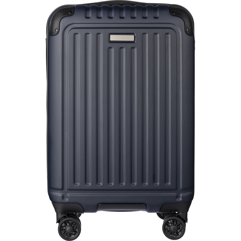 Gurulós bőrönd 8 kerékkel és háromszintű fogantyúrendszerrel. Beépített számzár és külön lapocska a lézergravírozáshoz. USB porttal. Emblémázás: Gravírozás