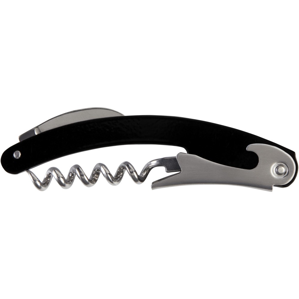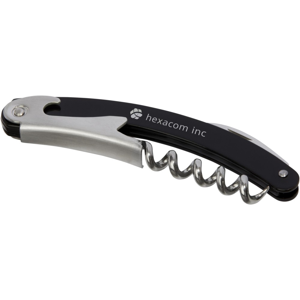 Rozsdamentes acél pincérbicska, fóliavágó, üvegnyitó és dugóhúzó. Emblémázás: Gravírozás, Tamponnyomás