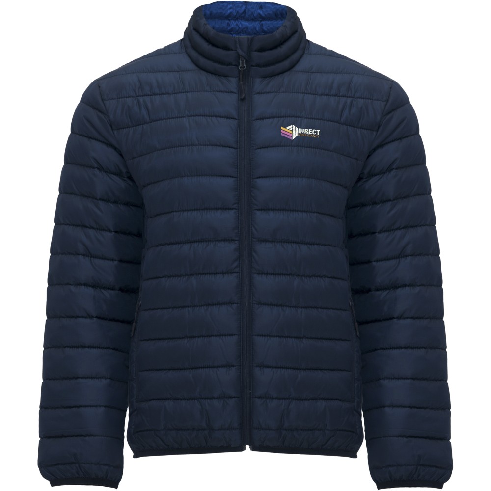 Férfi steppelt, dzseki tollszerű béléssel, tokkal. Fordított cipzárak, hozzáillő színű állvédő és cipzár. Két cipzáras elülső zseb. Színben illeszkedő szegély a galléron, a kézelőn és az alsó szegélyen. Kontrasztos színű belső bélés. Könnyű és összehajtható ruhadarab. Vízálló. Szélálló. 100% poliészter, 290 g/m2. A bélés 100% poliészter, a töltet 100% poliészter. Emblémázás: Hímzés