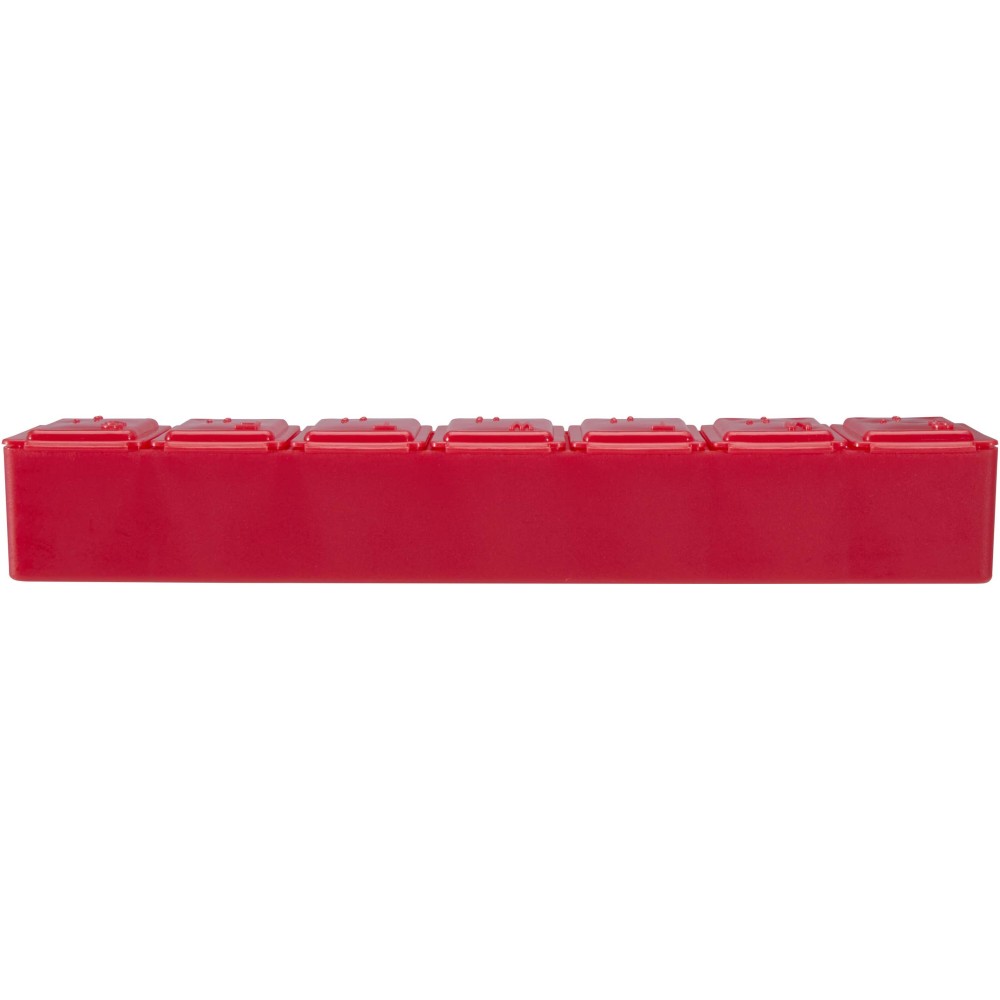 Gyógyszeresdoboznak, gyógyszertartónak, pirulatartónak is alkalmas. Hét, egyértelműen jelölt rekesszel rendelkezik (hétfőtől vasárnapig), így biztosan nem marad ki egyetlen adag sem. Kompakt és tartós kialakítása miatt utazáshoz és mindennapi használatra egyaránt ideális, megkönnyítve a vitaminok szállítását és tárolását. Emblémázás: Matricázás, Tamponnyomás
