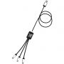 Világító logós töltőkábel gumi és fém bevonattal, három csatlakozóval (Type-C, Android, iPhone). Egyszerre akár három készülék is tölthető. Kábelek hossza (dugókkal együtt): 10 cm. Teljes kábelhossz: 1 méter. Az újrahasznosított PET műanyag kábel és csomagolás újrahasznosított papírból és újrahasznosított műanyagból készül. Emblémázás: Gravírozás