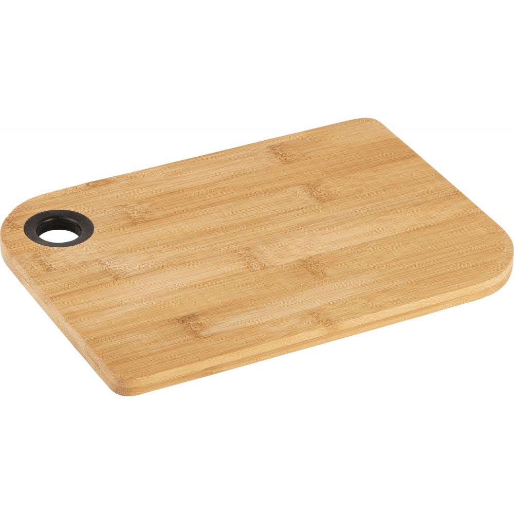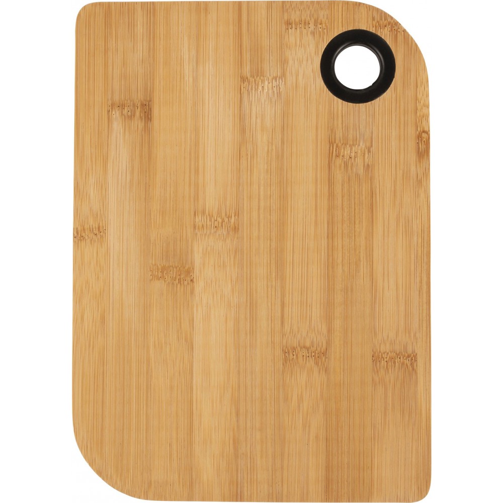 Bambusz vágódeszka szilikongyűrűvel ellátott fogóval. Bambusz, szilikon. Emblémázás: Gravírozás
