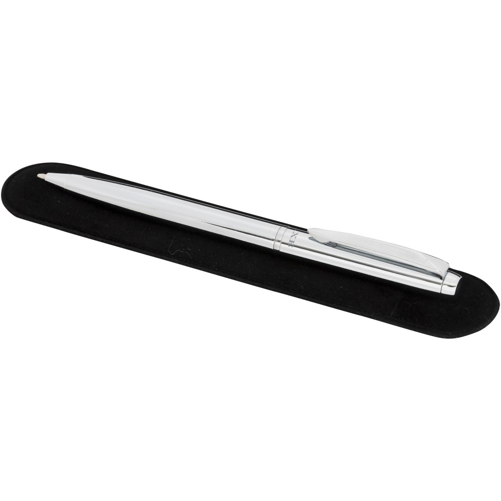Kifinomult tervezésű golyóstoll krómozott vagy színes alsó résszel és fényes krómozott részletekkel. Prémium minőségű fekete tollbetéttel. Csomagolása Luxe ajándékdoboz.Fém. Emblémázás: Gravírozás, Tamponnyomás