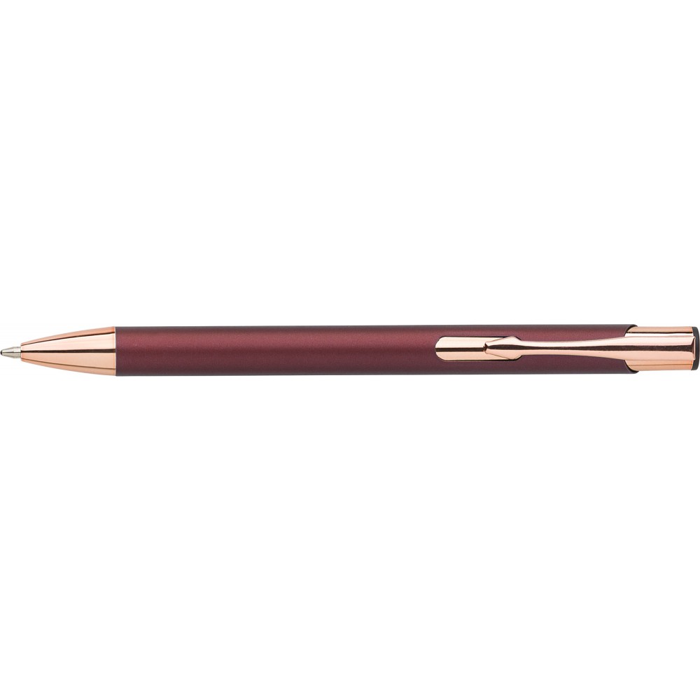 Alumínium golyóstoll matt felülettel, rózsaarany részletekkel, kék tollbetéttel. Emblémázás: Gravírozás, Tamponnyomás, UV nyomtatás