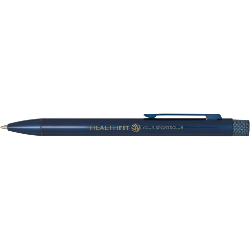 Golyóstoll színes festékszórt bevonattal. A gomb és a hegy sárgarézből, a tollteste újrahasznosított sárgarézből, a klipsz pedig vasból készült. Kék tollbetéttel. Írási hossz: 1000 méter. Hegyméret: 1,0 mm. Ajándékdobozban szállítjuk. Emblémázás: Gravírozás