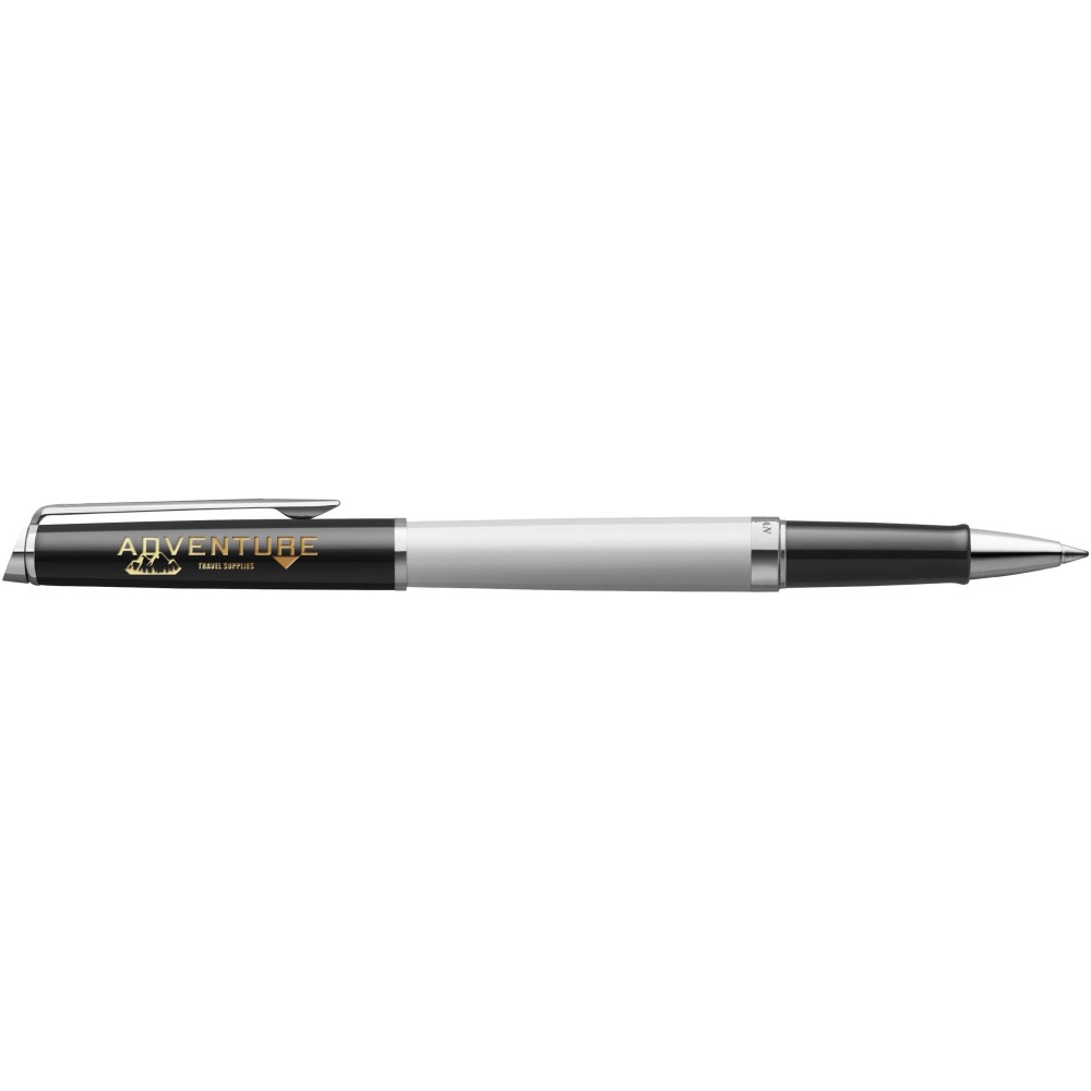 A Waterman Hemisphere rollerball toll stílusos és magas minőségű íróeszköz színblokkokból kialakított design-nal, palládium díszítéssel. Modern esztétikáját a palládium díszítés luxus hatása egészíti ki, így alkalmas mindennapi használatra és különleges alkalmakra is. Finom rollerball hegyével sima és precíz írásélményt nyújt, míg ergonomikus kialakítása biztosítja a kényelmet hosszabb használat során. Ez a toll kiváló választás azok számára, akik értékelik a rollerball tollak sima futását és a cserélhető patronok kényelmét. Személyes használatra vagy elegáns ajándéknak egyaránt kiemelkedő dizájnjával és teljesítményével. Ajándékdobozban szállítjuk. Fekete tollbetéttel. Írási hossz: 800 méter. Emblémázás: Gravírozás