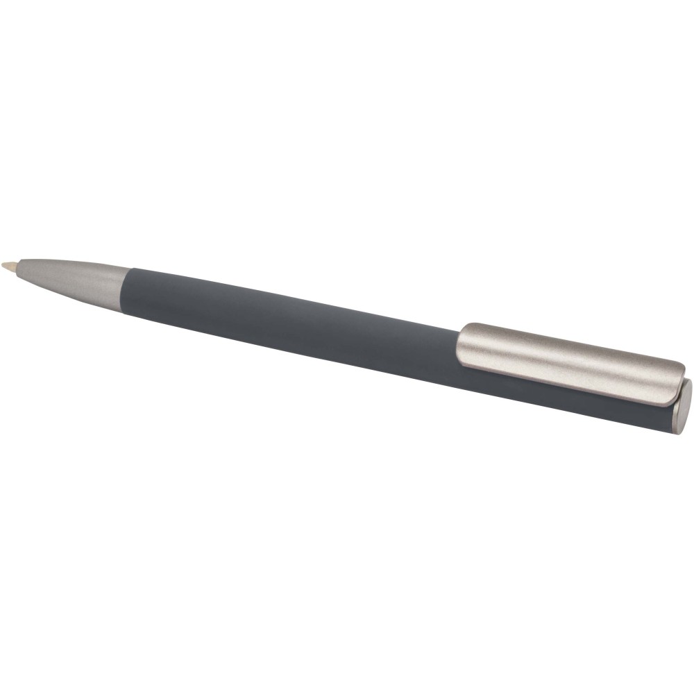 Golyóstoll újrahasznosított alumíniumból készült tolltesttel és sötétszürke matt bevonattal, ABS műanyagból készült klipsszel. Tinta színe: kék. Íráshossz: 800 méter. Tollhegy mérete: 1,0 mm. Emblémázás: Gravírozás