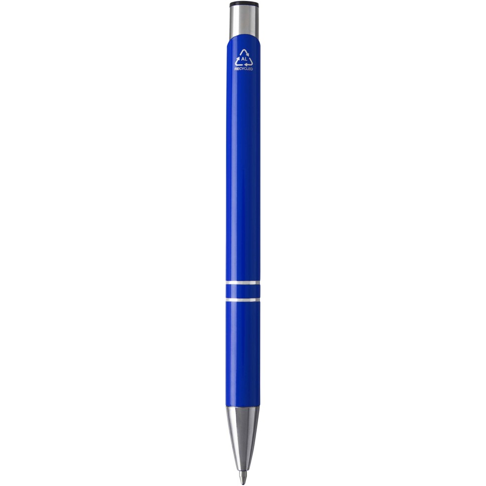 Golyóstoll újrahasznosított alumíniumból, lakkozott felülettel és króm részletekkel. Az újrahasznosított alumínium csökkenti a hulladéklerakók terhelését, segít megőrizni a természeti erőforrásokat és hozzájárul az üvegházhatású gázok kibocsátásának csökkentéséhez. Tinta színe: kék. Íráshossz: 1000 méter. Tollhegy mérete: 1,0 mm. Emblémázás: Gravírozás, Tamponnyomás