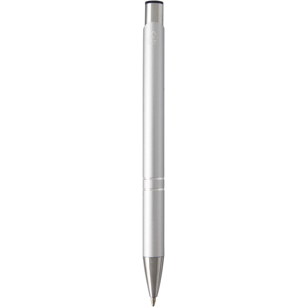 Golyóstoll újrahasznosított alumíniumból, lakkozott felülettel és króm részletekkel. Az újrahasznosított alumínium csökkenti a hulladéklerakók terhelését, segít megőrizni a természeti erőforrásokat és hozzájárul az üvegházhatású gázok kibocsátásának csökkentéséhez. Tinta színe: kék. Íráshossz: 1000 méter. Tollhegy mérete: 1,0 mm. Emblémázás: Gravírozás, Tamponnyomás