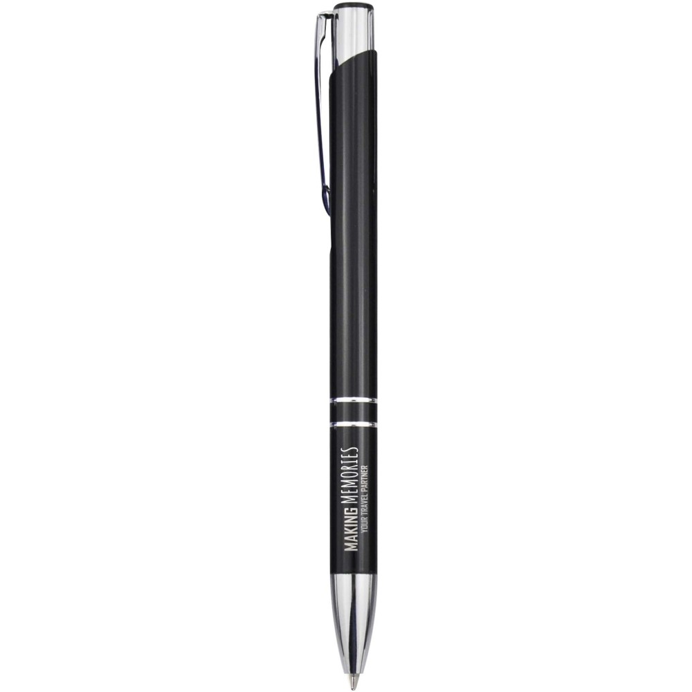 Golyóstoll újrahasznosított alumíniumból, lakkozott felülettel és króm részletekkel. Az újrahasznosított alumínium csökkenti a hulladéklerakók terhelését, segít megőrizni a természeti erőforrásokat és hozzájárul az üvegházhatású gázok kibocsátásának csökkentéséhez. Tinta színe: kék. Íráshossz: 1000 méter. Tollhegy mérete: 1,0 mm. Emblémázás: Gravírozás, Tamponnyomás