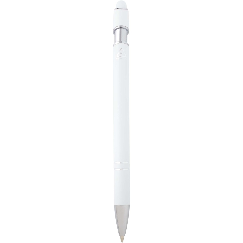 A Kish golyóstoll ezüst bevonattal újrahasznosított alumíniumból készült tolltesttel és szilikon, érintőképernyős véggel rendelkezik. Az újrahasznosított alumínium csökkenti a hulladék mennyiségét a lerakókban, hozzájárul a természeti erőforrások megőrzéséhez és a károsanyag-kibocsátás mérsékléséhez. Tinta színe: fekete. Íráshossz: 800 méter. Tollhegy mérete: 1,0 mm. Emblémázás: Gravírozás