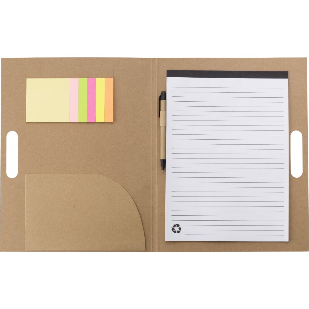 Karton mappa tollal és jegyzettömbbel, natúr