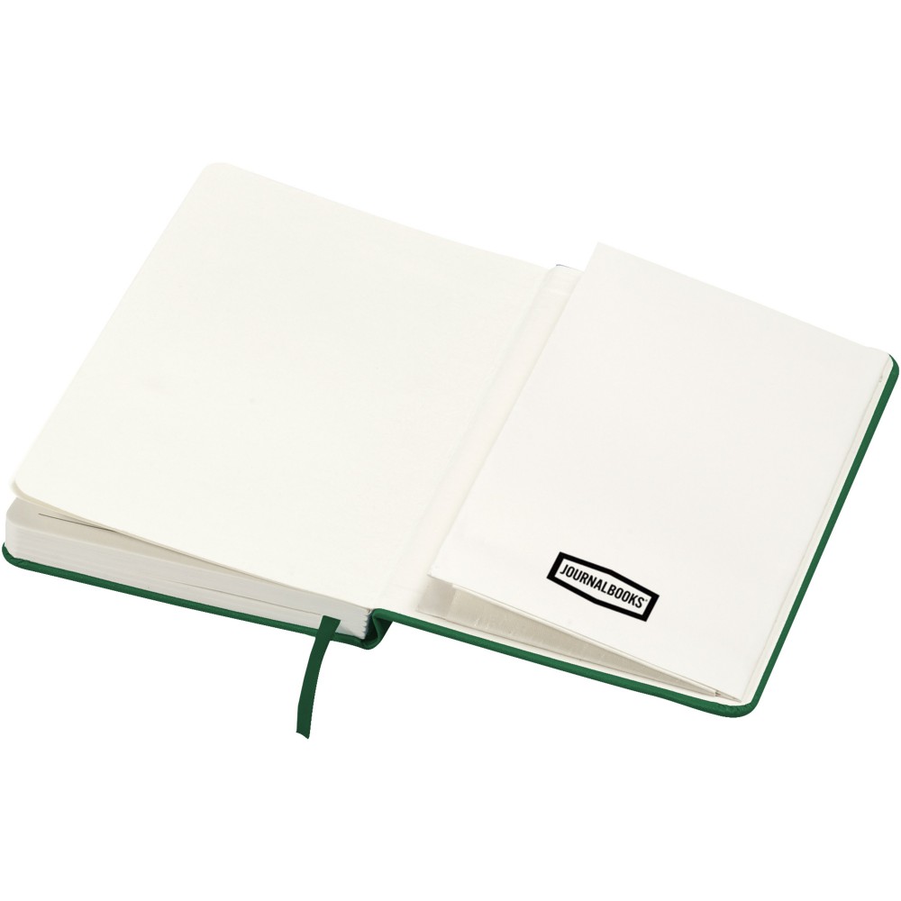 Ez az exkluzív kivitelű, klasszikus stílusú, keményfedeles, gumiszalaggal záródó, 80 lapos (80 g/m2), vonalas zsebkönyv (A5 méret) ideális jegyzetek készítéséhez és megosztásához. A hátoldalán kihúzható zsebbel a kisebb jegyzetek tárolásához. Journalbooks díszdobozban. Emblémázás: Szitanyomás, Tamponnyomás, UV nyomtatás