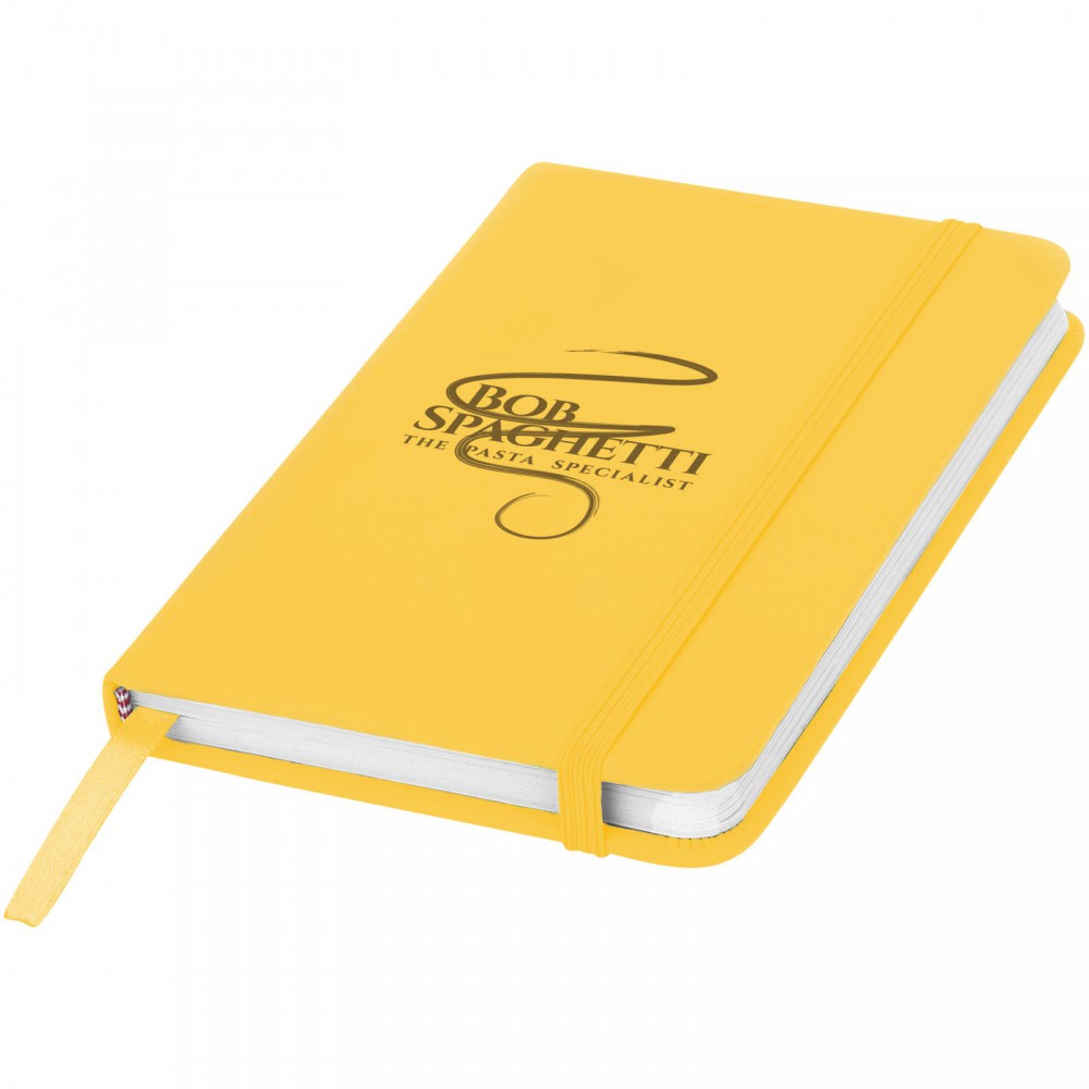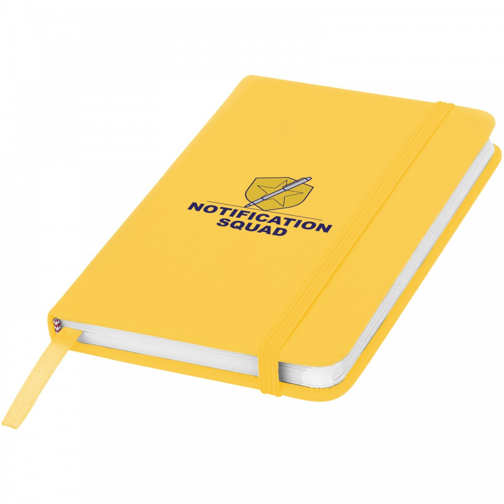 Spectrum A6 jegyzetfüzet színes fedéllel, jelölőszalaggal és gumipánttal, 96 vonalas lappal (60g/m2). PVC fedett karton. Emblémázás: Szitanyomás, Tamponnyomás, UV nyomtatás