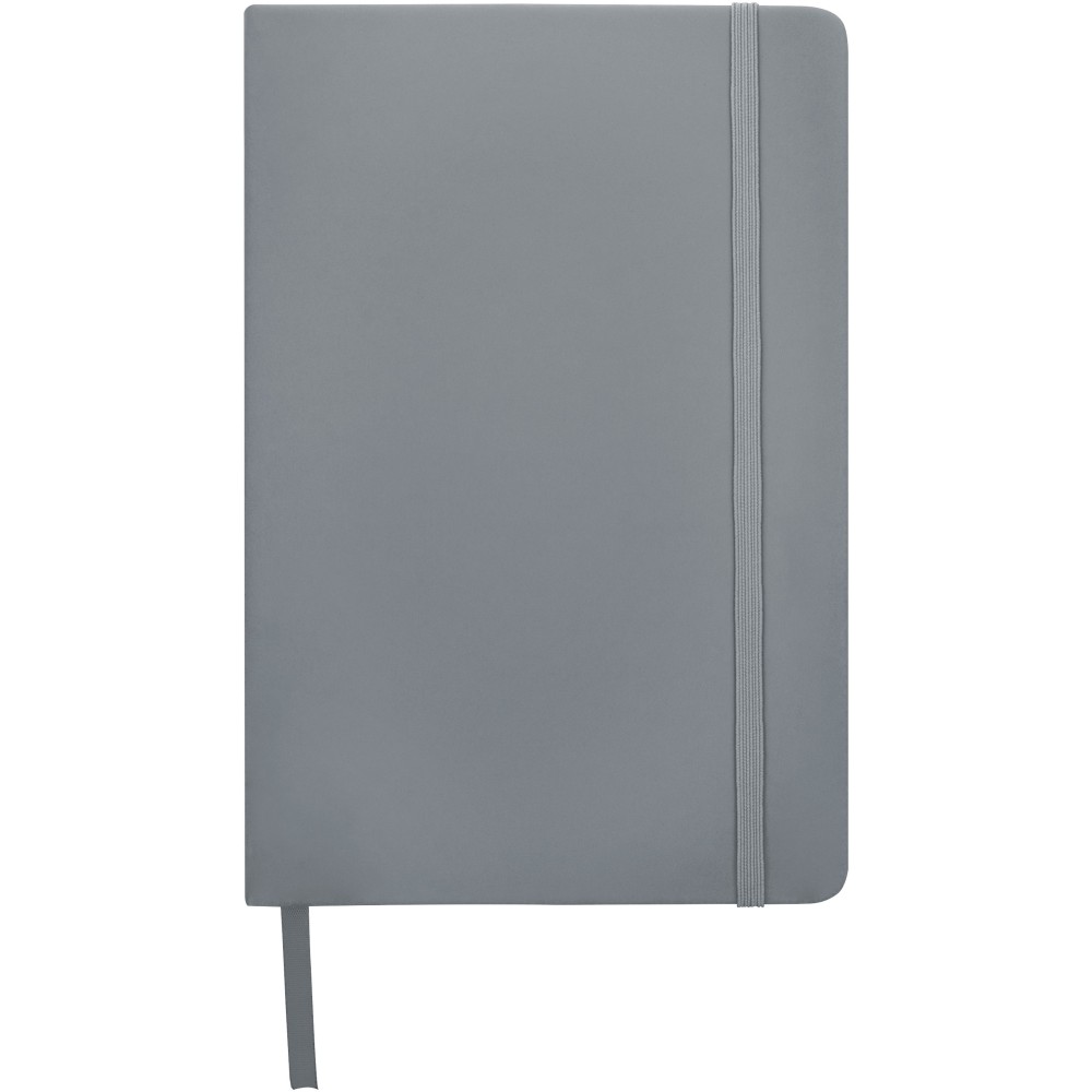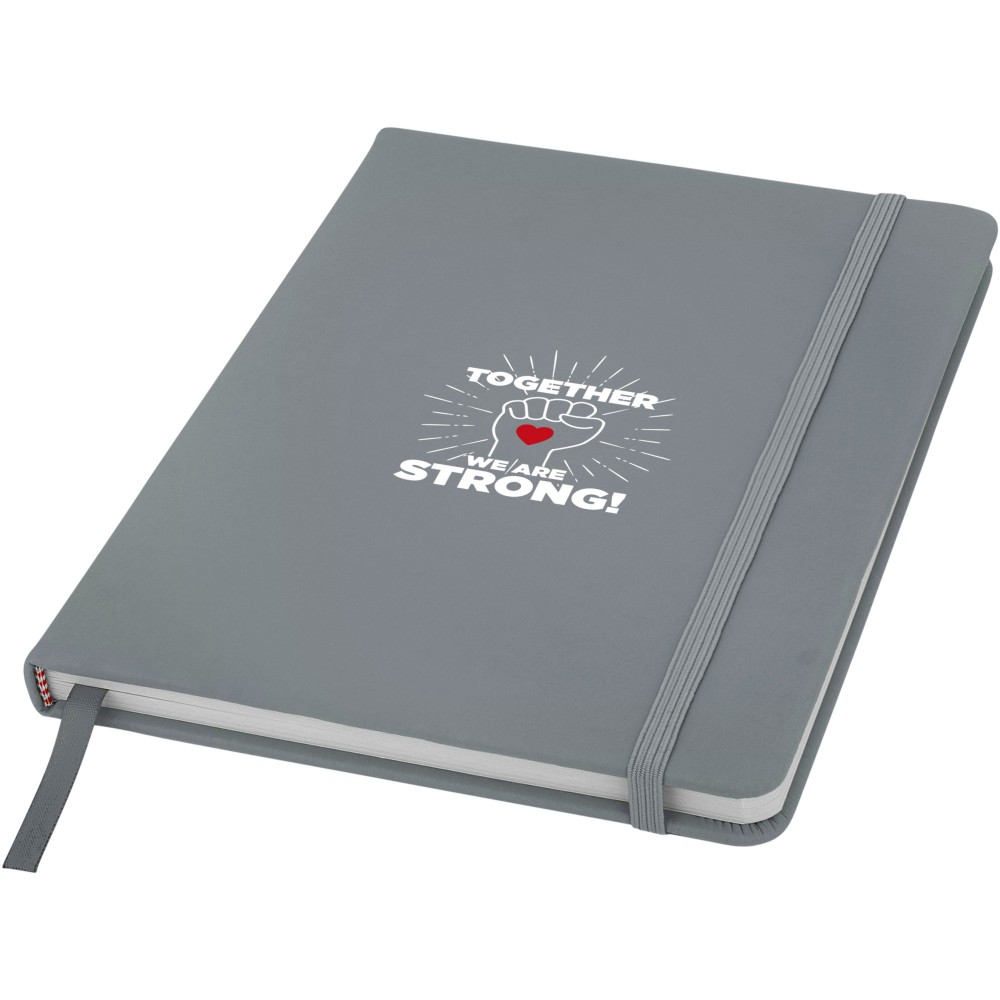Spectrum A/5 jegyzetfüzet színes fedéllel, jelölőszalaggal és gumipánttal, 96 vonalas lappal (60g/m2). Emblémázás: Szitanyomás, Tamponnyomás, UV nyomtatás