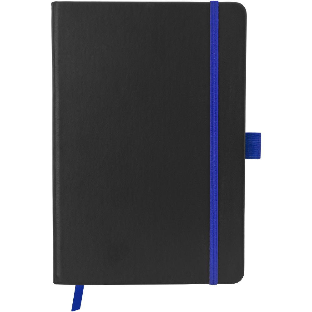 Color edge A/5 jegyzetfüzet színezett éllel, jelölőszalaggal és gumipánttal, 80 bézs színű vonalas lappal (70g/m2). PU. Emblémázás: Szitanyomás, Tamponnyomás, UV nyomtatás