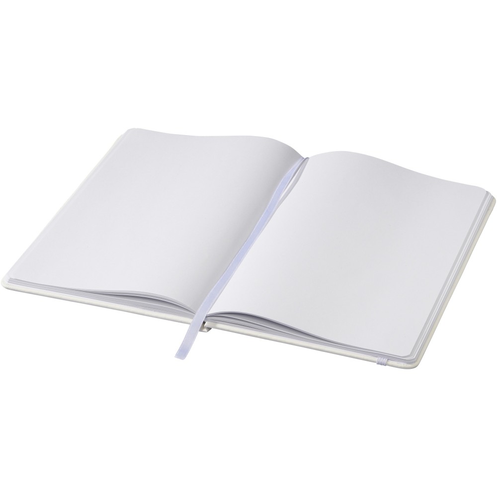 A/5 -ös jegyzetfüzet színben hozzáillő gumipánttal és jelölőszalaggal. 96 lapos.( (60g/m2). Sima lapok. Emblémázás: Szitanyomás, Tamponnyomás, UV nyomtatás