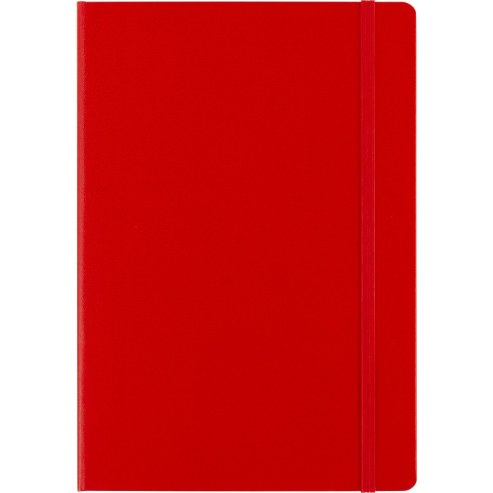 A5-ös füzet gumis záródással, 128 vonalas, dátumjelzéses lappal és papírzsebbel a hátsó, belső borítón. A külső hátsó borítón IMPRESSION logó található. PVC, 80 g papír. Emblémázás: Tamponnyomás, UV nyomtatás