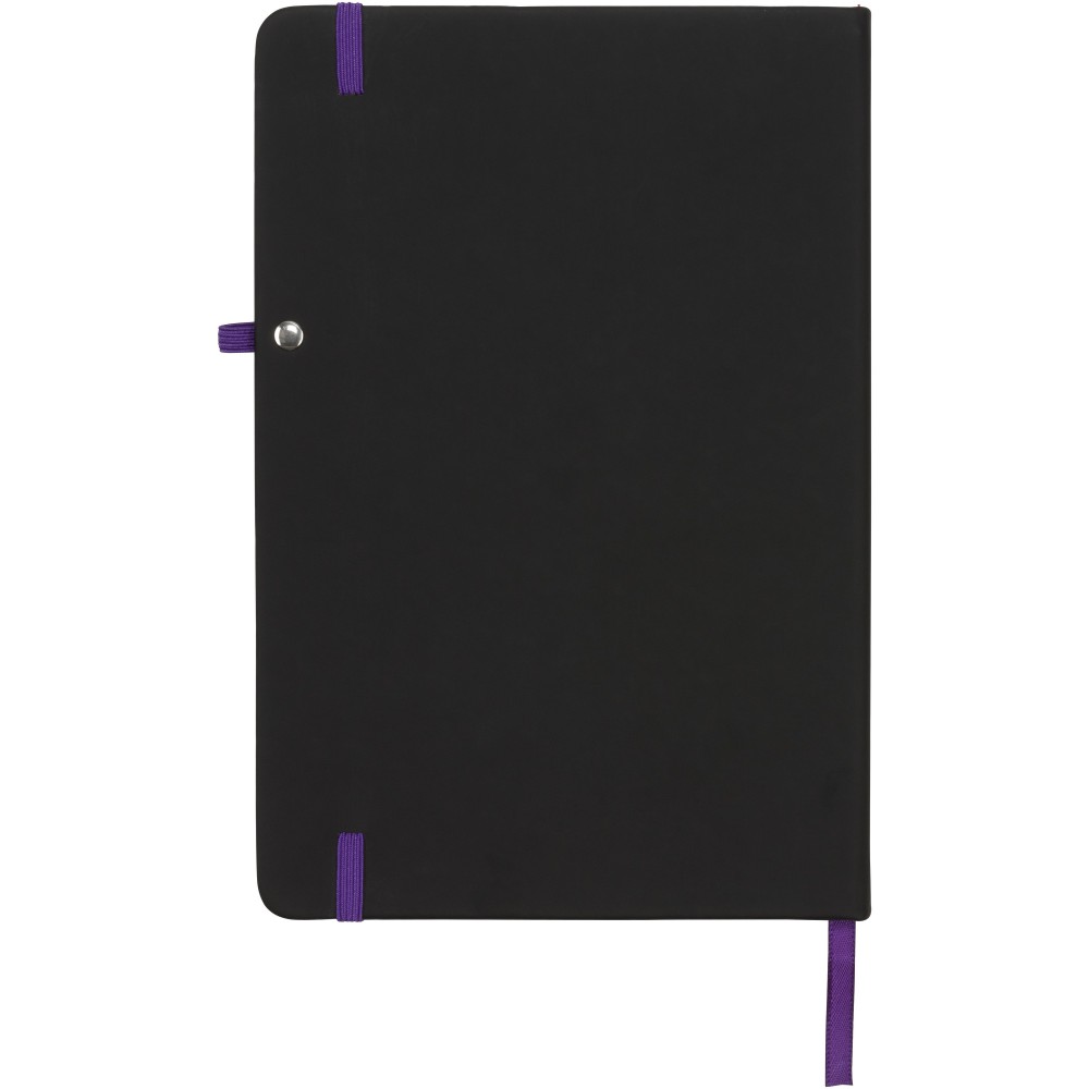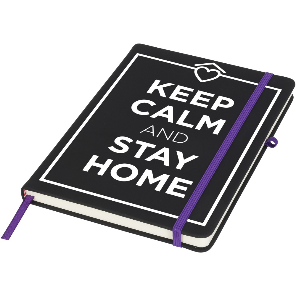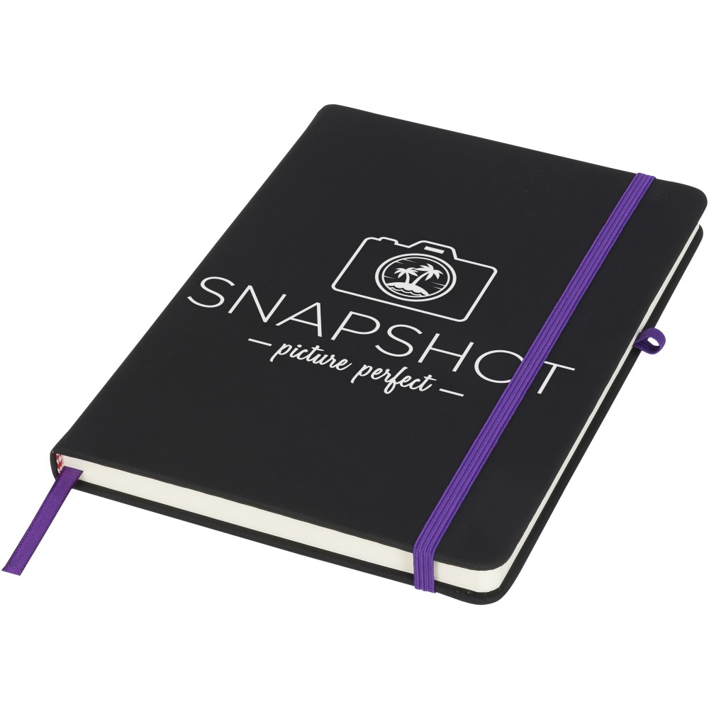 Puha felületű füzet színes gumipánttal, könyvjelzővel és tullhurokkal. 96 krémszínű vonalas lapot tartalmaz. Emblémázás: Szitanyomás, Tamponnyomás, UV nyomtatás