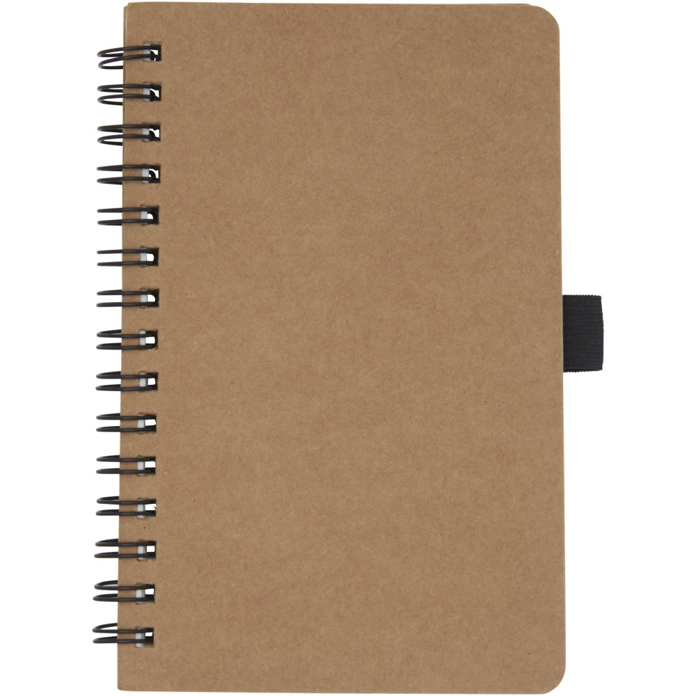 A6 méretű spirálfüzet újrahasznosított karton fedéllel, tollhurokkal. 70 db 60 g / m2 vonalas kőpapír lapok. A kőpapír 100% famentes és a gyártási eljárás során kevesebb energiát használnak fel, mint az újrahasznosított vagy új papír előállítása esetében. A papír vízálló és szakadásálló, természetes fehér színű (nem fehérített). Újrahasznosított karton, kőpapír. Emblémázás: Tamponnyomás