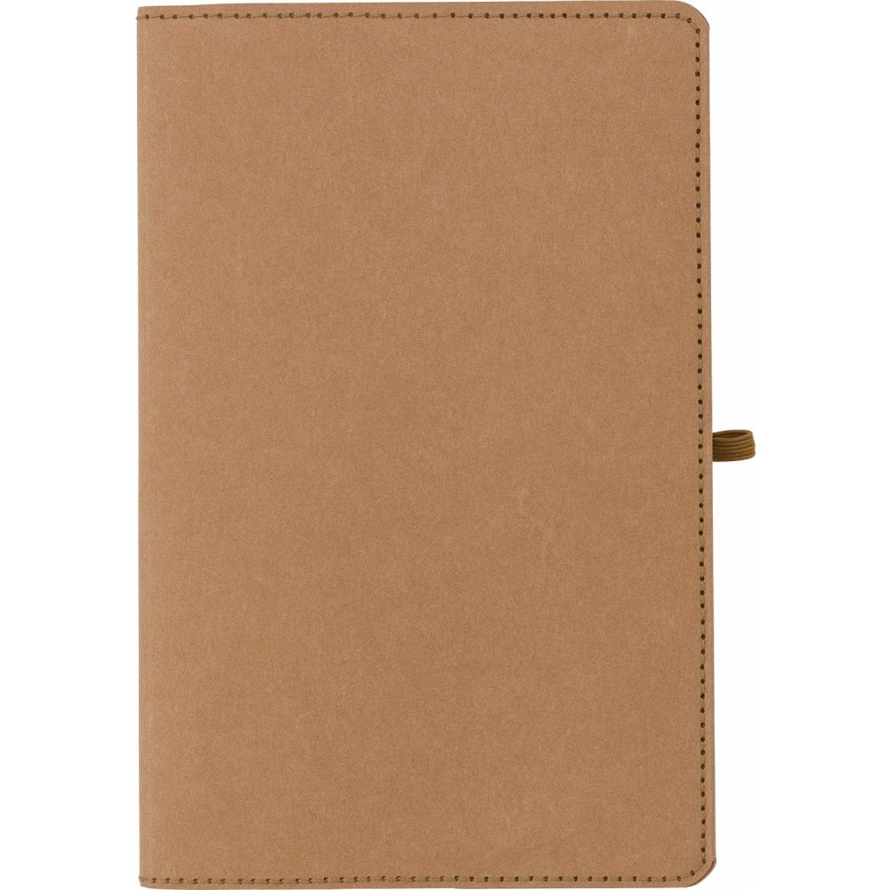 Mosott kraft papír jegyzetfüzet (kb. A5-ös méret), 96 vonalas lappal. Emblémázás: Tamponnyomás