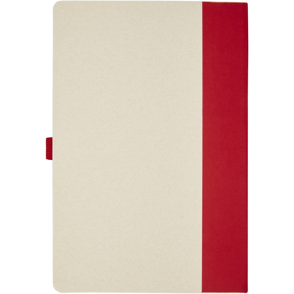 A5 méretű füzet és golyóstoll készlet. A jegyzetfüzet 80 vonalas lapot (80 g/m2) tartalmaz, amelyek újrahasznosított tejes kartondobozokból készülnek (akár 70%), színes papírgerinccel és egy tollhurokkal. A tollhurokban egy nyomógombos golyóstoll található a jegyzetfüzet színéhez illő színben. A toll teste ugyanabból az újrahasznosított anyagból készült, a gomb, a klipsz és a hegy pedig színes PLA műanyagból készült. A toll fekete tollbetéttel érkezik. A használt tejesdobozokat összegyűjtik, válogatják, feldolgozzák és papírrá alakítják, így a hulladékból hasznos termék készül. Emblémázás: Szitanyomás, Tamponnyomás