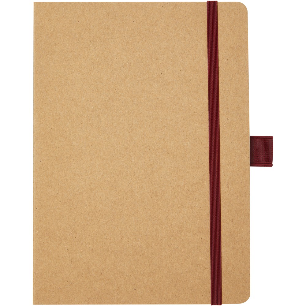 Jegyzetfüzet újrahasznosított vonalas lapokkal (70 g/m2), lekerekített sarkokkal, színes gumi záródással és az 107384-es tollszínhez illő tollhurokkal. Emblémázás: Szitanyomás, Tamponnyomás