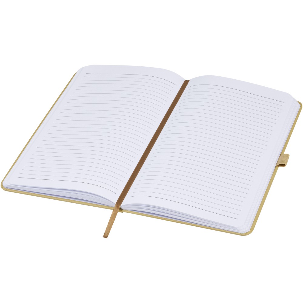 Könnyű, keményfedeles jegyzetfüzet a mindennapi jegyzeteléshez újrahasznosított alapanyagokból készült borítóval. A barna borító kávémaradványt, a zöld borító olajbogyó-maradványt, a fehér pedig kukoricamaradékot tartalmaz. 80 lap (70 g/m2) újrahasznosított fehér vonalas lapot tartalmaz. Emblémázás: Tamponnyomás