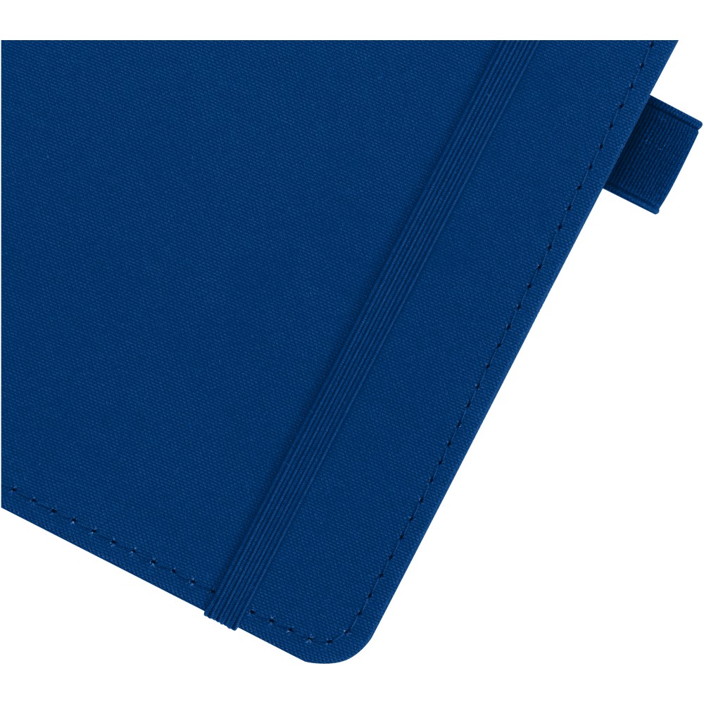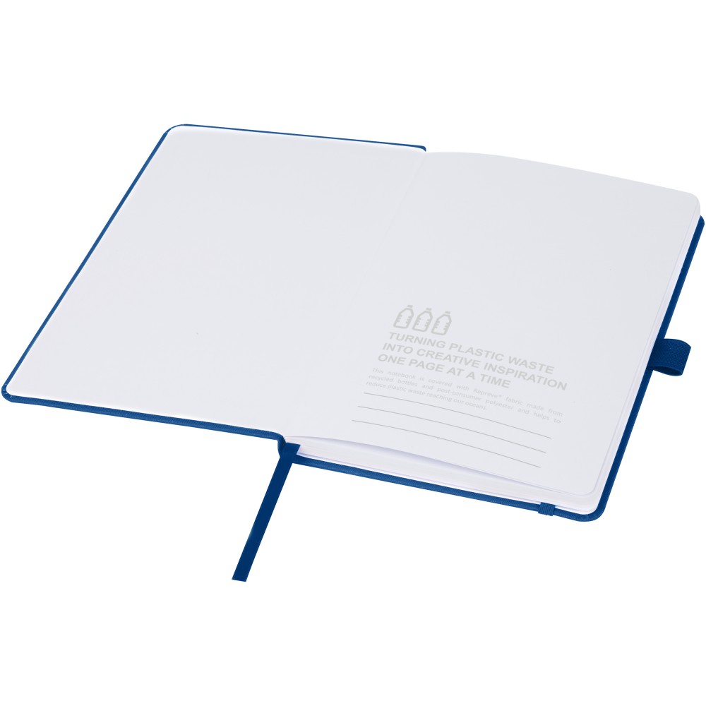 A Thalaasa jegyzetfüzet poliészter borítója a tengerparti területekről begyűjtött, óceánba került műanyagból készült. Ez fenntarthatóbb választássá teszi ezt a füzetet, mivel segít csökkenteni a műanyaghulladékot. 80 vonalas lapot tartalmaz 80 g/m2 újrahasznosított papírból, tollhurokkal, gumis záródással, könyvjelzővel és harmonikazsebbel. Emblémázás: Szitanyomás, UV nyomtatás