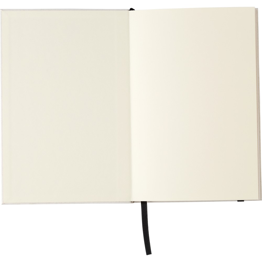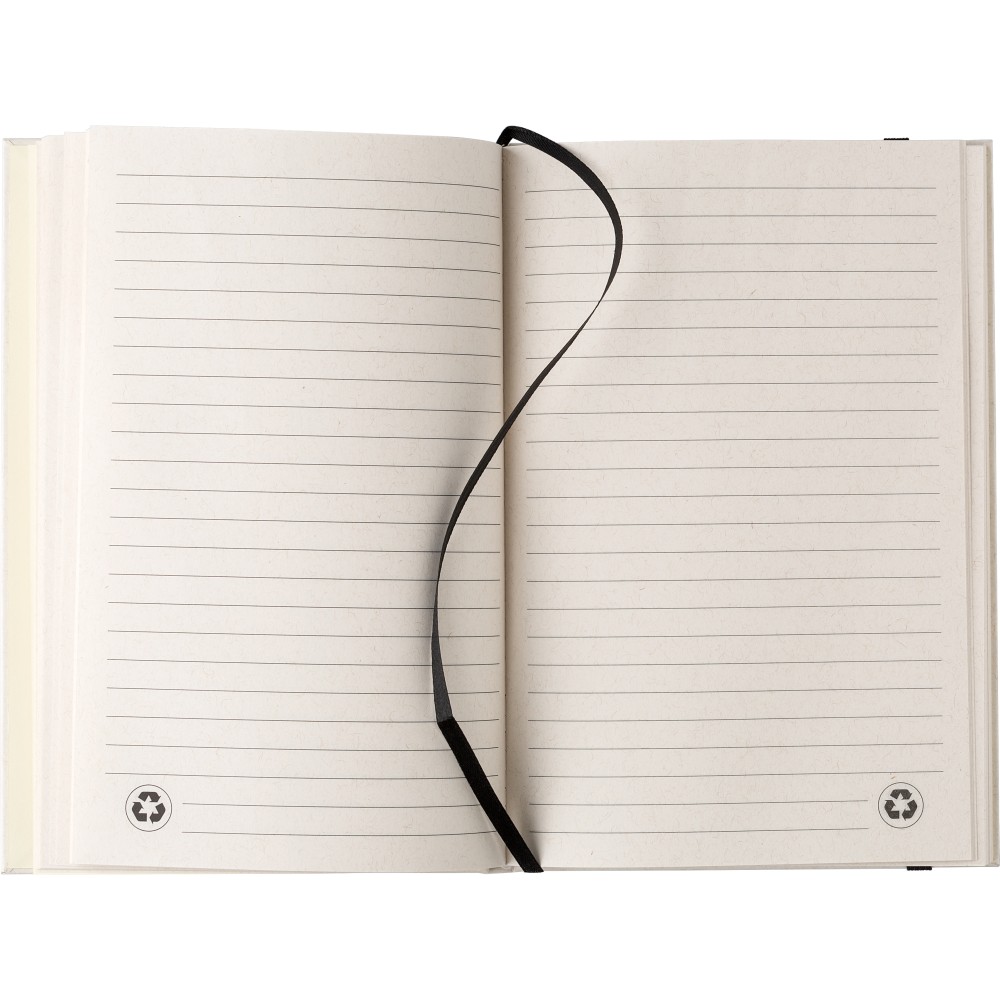 Újrahasznosított tejesdobozból készült A5-ös jegyzetfüzet 80 lappal, gumiszalaggal és könyvjelzővel. 70%-ban újrahasznosított tejeskartonból és 30%-ban újrahasznosított papírból készült. Igazolóbélyegző a füzet hátuljának az alján. Emblémázás: Tamponnyomás, UV nyomtatás