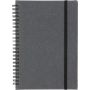 Újrahasznosított bőrből készült A5-ös jegyzetfüzet, 80 lappal. Újrahasznosított bőr alapanyagot jelző dombornyomás a borító hátoldalán. Emblémázás: Tamponnyomás