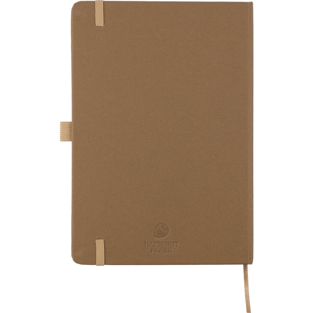 Újrahasznosított biohulladékból és kartonból készült A5-ös jegyzetfüzet 80 vonalas lappal, szójatintával nyomtatva. Minden füzet hátoldalán a hivatkozott alapanyag színének megfelelő dombornyomás található: zöld a citrusfélék, piros a cseresznye, kék a levendula, natúr a szőlő és a barna a mandula alapanyagra utal. A jegyzetfüzet olasz Favini papírral van bevonva. Emblémázás: Szitanyomás, Tamponnyomás