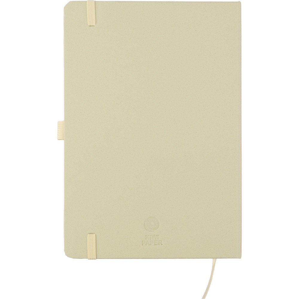Újrahasznosított biohulladékból és kartonból készült A5-ös jegyzetfüzet 80 vonalas lappal, szójatintával nyomtatva. Minden füzet hátoldalán a hivatkozott alapanyag színének megfelelő dombornyomás található: zöld a citrusfélék, piros a cseresznye, kék a levendula, natúr a szőlő és a barna a mandula alapanyagra utal. A jegyzetfüzet olasz Favini papírral van bevonva. Emblémázás: Szitanyomás, Tamponnyomás