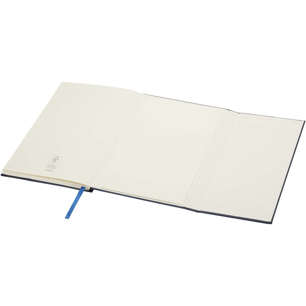 Az Alejandra A5 keményfedeles jegyzetfüzet újrahasznosított PU műanyagból és RPET-ből készült. 80 vonalas, 70 g/m2 krémszínű lapot tartalmaz, valamint szalagkönyvjelzővel és harmonika zsebbel van ellátva. Emblémázás: Tamponnyomás