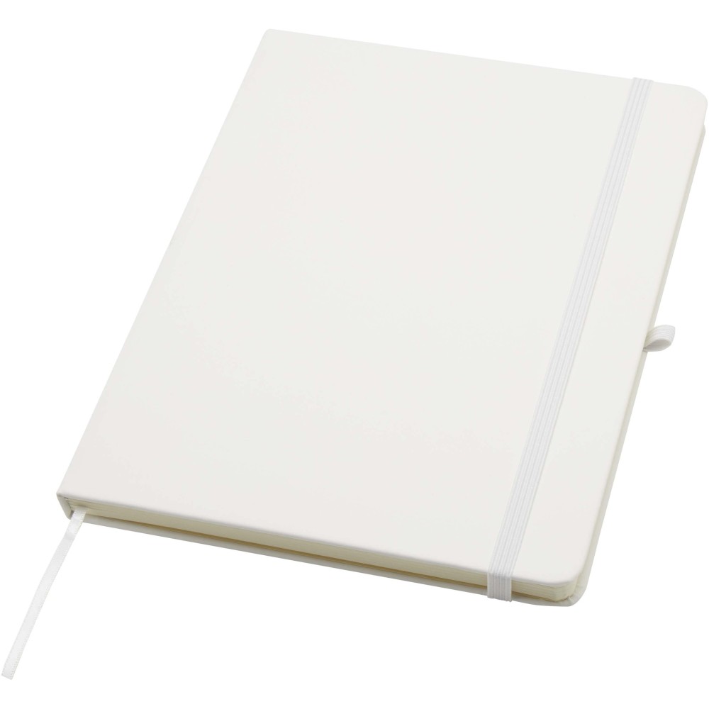 A Spectrum Plus A5 keményfedeles jegyzetfüzet lekerekített sarkokkal nemcsak az irodai mindennapok elengedhetetlen kelléke, hanem remek lehetőség márkád népszerűsítésére is. A jegyzetfüzet puha tapintású borítóval rendelkezik és 80 vonalas, krémszínű, 70 g/m2-es lapból áll, amely tökéletes gyors ötletek vagy hosszabb jegyzetek rögzítésére. A jegyzetfüzet tolltartó hurokkal, gumiszalagos záródással, könyvjelzővel és harmonikazsebbel van ellátva. Emblémázás: Tamponnyomás, UV nyomtatás