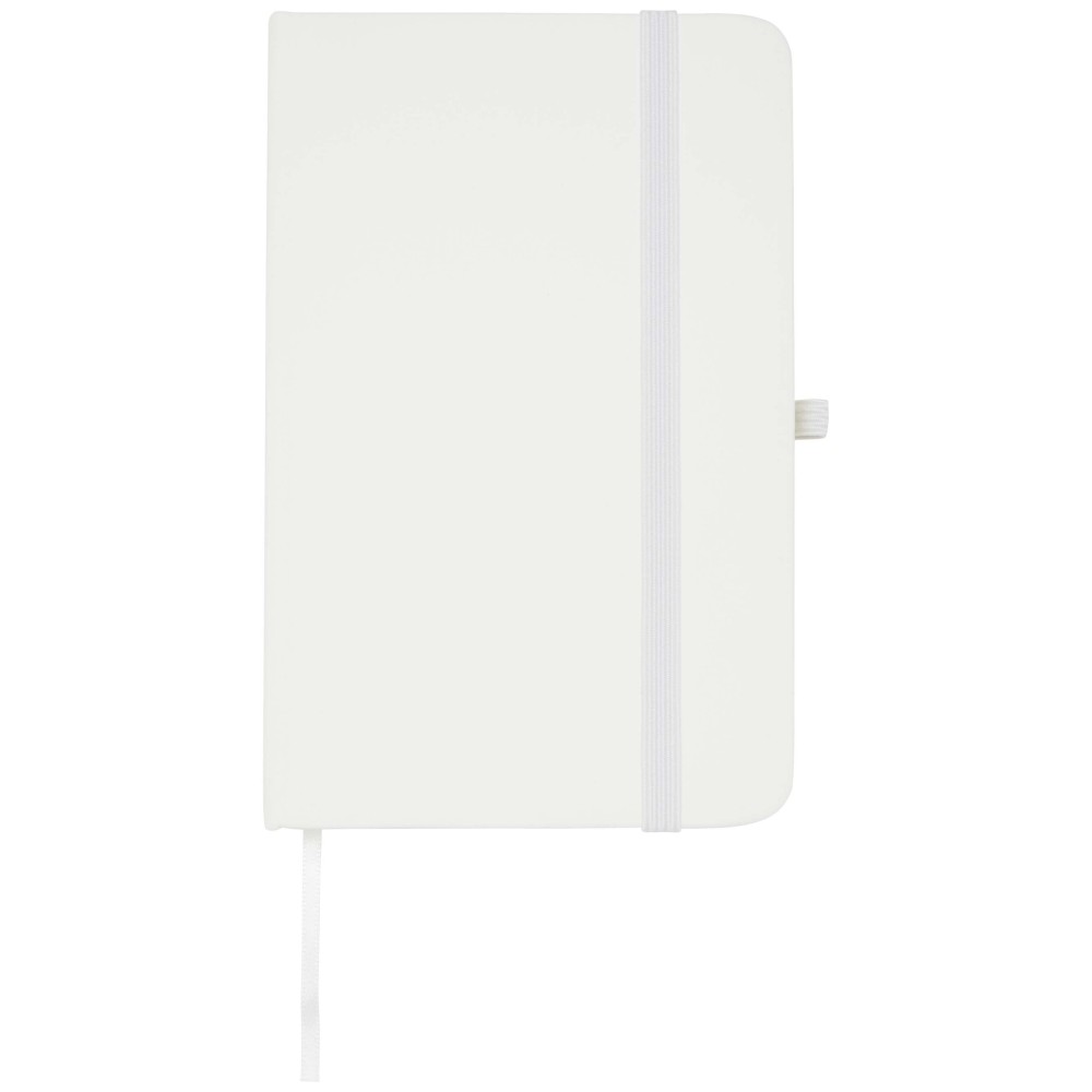 A Spectrum Plus A6 keményfedeles jegyzetfüzet lekerekített sarkokkal nemcsak az irodai mindennapok elengedhetetlen kelléke, hanem remek lehetőség márkád népszerűsítésére is. A jegyzetfüzet puha tapintású borítóval rendelkezik és 80 vonalas, krémszínű, 70 g/m2-es lapból áll, amely tökéletes gyors ötletek vagy hosszabb jegyzetek rögzítésére. A jegyzetfüzet tolltartó hurokkal, gumiszalagos záródással, könyvjelzővel és harmonikazsebbel van ellátva. Emblémázás: Tamponnyomás