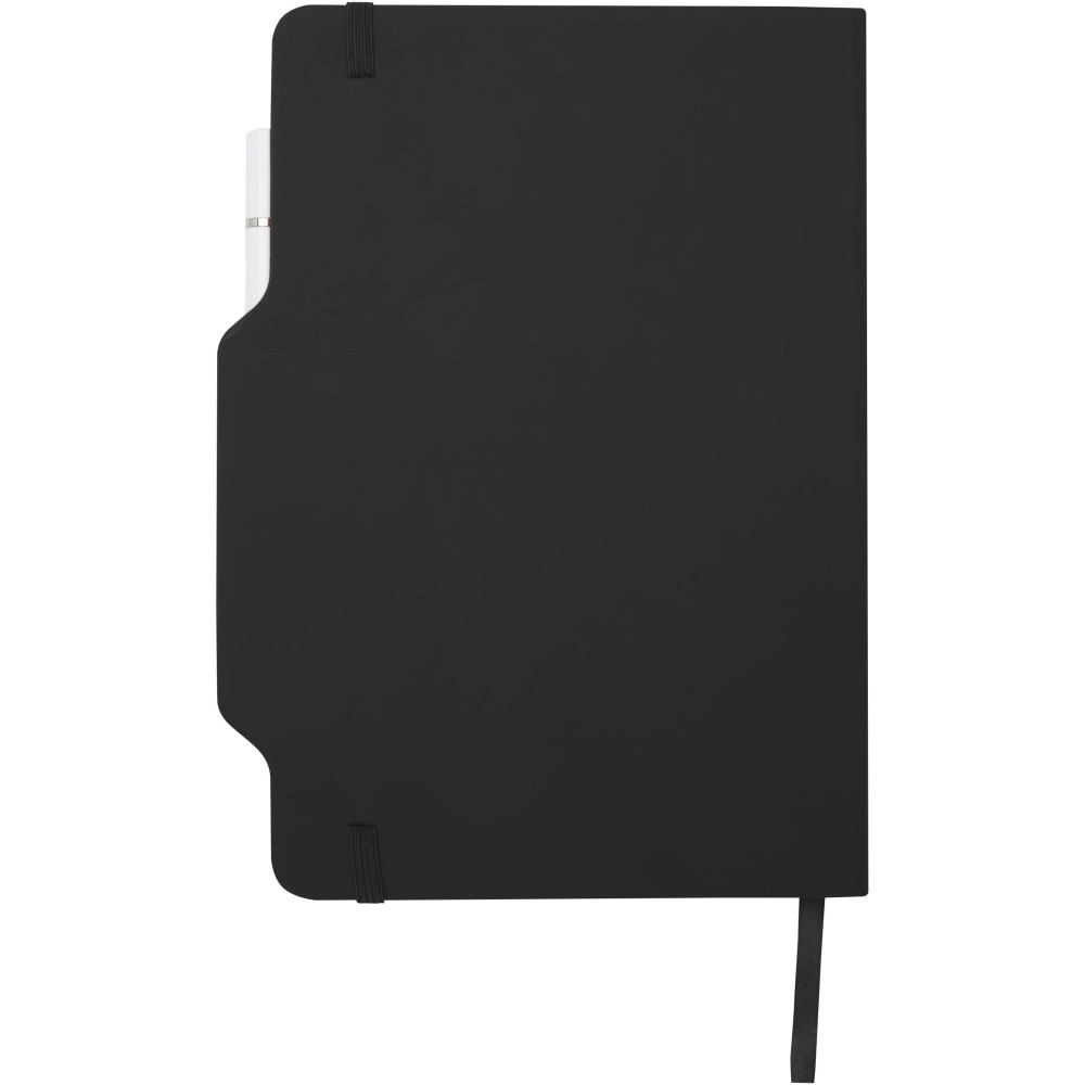 A Nexus A5 keményfedeles jegyzetfüzet egy toll/ceruza kombinációval praktikus és stílusos választás. 80 krém színű, 70 g/m2 vonalas lapot tartalmaz, lekerekített sarkokkal, rugalmas zárópánttal és szalagkönyvjelzővel. A kétvégű toll egyik oldala fekete tintával író golyóstoll, a másik oldala ceruza. A toll íráshossza: 1000 méter. Tollhegy mérete: 1,00 mm. Emblémázás: Tamponnyomás