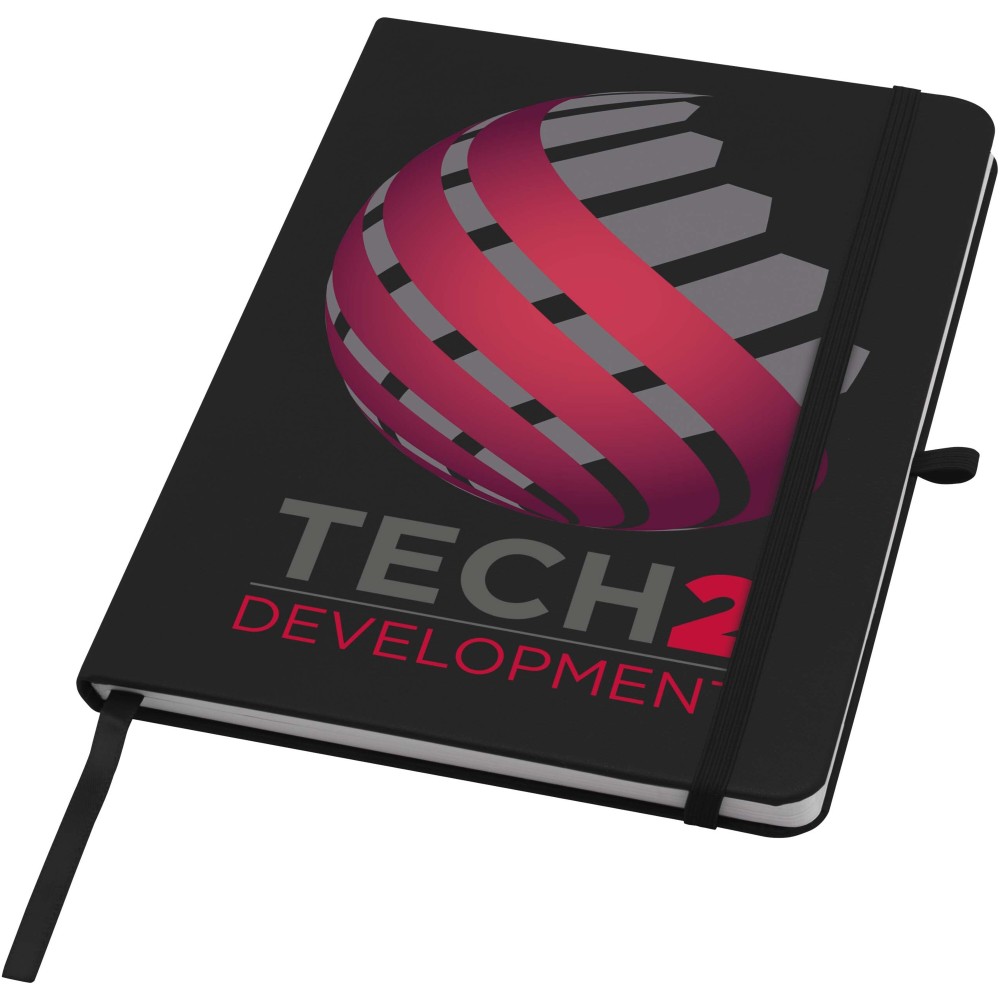 A Teak A5 méretű, újrahasznosított karton keménytáblás jegyzetfüzet lekerekített sarkokkal nemcsak irodai alapdarab, hanem kiváló lehetőség a márka népszerűsítésére is. A jegyzetfüzet 96 darab 70 g/m2-es vonalas lapot tartalmaz és puha tapintású borítóval rendelkezik. Beépített tolltartó hurokkal, rugalmas zárópánttal és könyvjelzővel van ellátva. Emblémázás: Tamponnyomás, UV nyomtatás