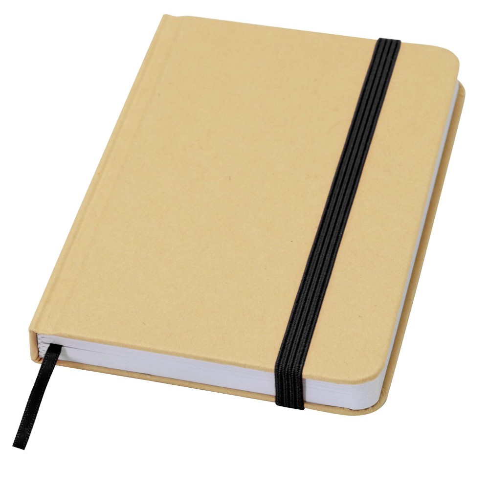 A Reed A6 méretű, újrahasznosított karton keménytáblás jegyzetfüzet lekerekített sarkokkal nemcsak irodai alapdarab, hanem kiváló lehetőség a márka népszerűsítésére is. A jegyzetfüzet 96 darab 70 g/m2-es üres lapot tartalmaz, és puha tapintású borítóval rendelkezik. Rugalmas zárópánttal és szalagkönyvjelzővel van ellátva. Emblémázás: Tamponnyomás, UV nyomtatás
